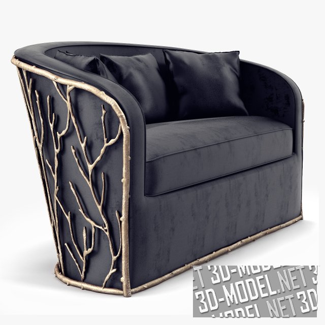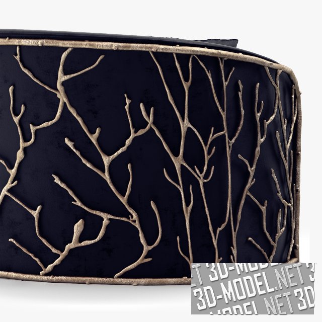 Настенные светильники полностью поддерживают концепцию набора. Змеевидный хвост бра, скользящий по стене, кажется, может размотаться в любой момент. Этот настенный светильник обязательно добавит ощущение первобытной экзотики и энергии. Для изготовления и отделки использовались латунь, золотая фольга, ручная работа, полировка. Размеры бра: 88,9 х 27,94 х 15,24 см.