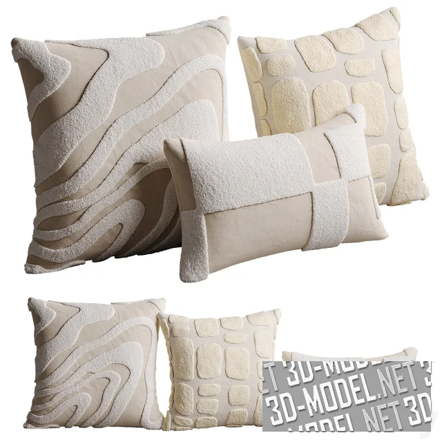 Коллекция современных декоративных квадратных и прямоугольных подушек (4 варианта) с «выстриженными» геометрическими рисунками на коротковорсовых чехлах. В наборе: квадратный чехол Limestone Textured Cotton Blend, арт. 7923058/GME305, 50х50см; прямоугольный чехол для подушки Limestone Textured Cotton Blend, арт. 7923040/GME306, 50x30см; чехол для подушки Peeble Textured Linen Cotton, цвет натуральный, арт. 7955740/GKF810, 45x45см; чехол для подушки Peeble Textured Linen Cotton, цвет Pecan (терракотовый, рыжий), арт. 7955758/GKF810, 45x45см.
