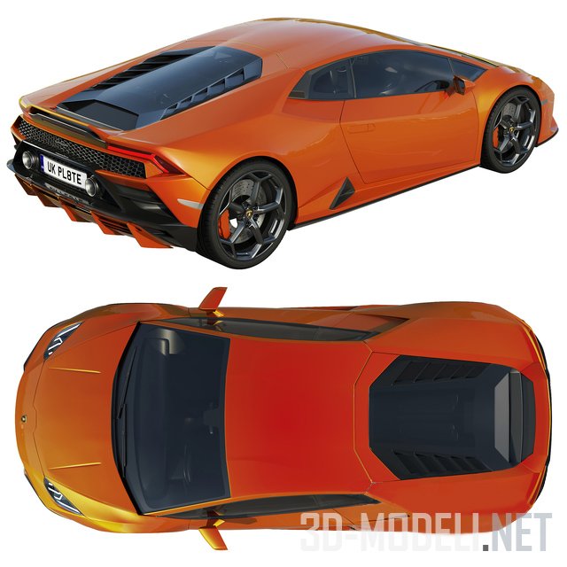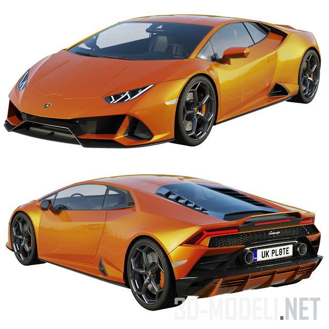 Огненно-оранжевый, с качественной, детальной проработкой Lamborghini Huracan EVO, выпуска 2019 года. Популярный и узнаваемый суперкар с характерными чертами.
