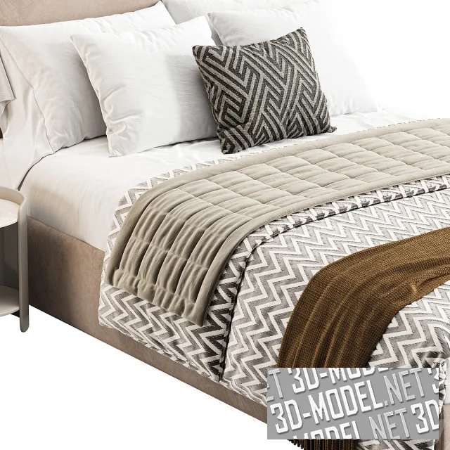 Дополнена прикроватными тумбами из дерева, цвет которого органично гармонирует с цветом обивки кровати. Настольные лампы помогут создать уютную обстановку в интерьере спальни.