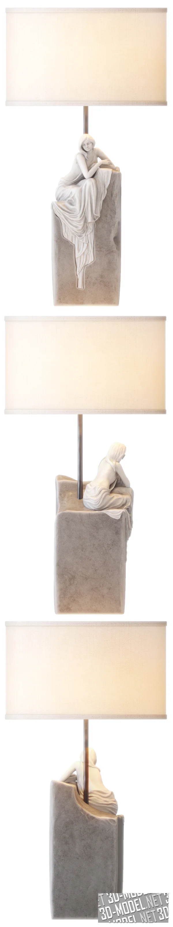 Настольная лампа Perception от Lladro, со скульптурным основанием и бежевым абажуром цилиндрической формы. Основание представляет собой гранитный камень с сидящей на нем девушкой. Фигура девушки белого цвета выполнена из фирменного фарфора Lladro.