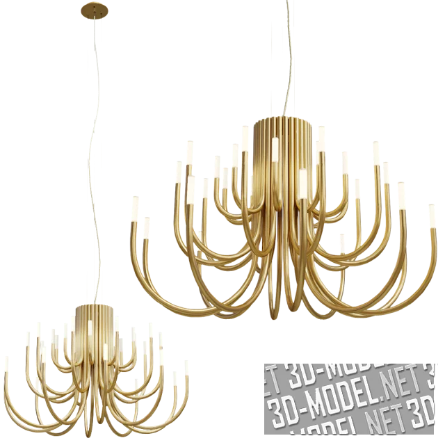 Изящная люстра PALMA ALMA от Loft Concept, выполнена в неоклассическом стиле. Светильник состоит из множества выгнутых золотистых трубок с белыми стеклянными плафонами на концах. Трубки в три яруса расходятся арочными лучами от центральной оси. Можно использовать люстру в домашних и общественных интерьерах. Размеры PALMA ALMA: