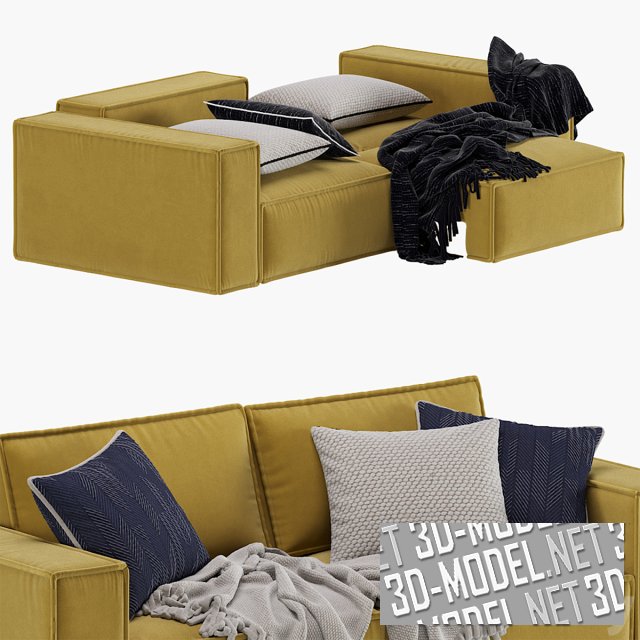 Мягкий диван Ebi Happy в стиле лофт. Представлен в двух вариантах отделки: серого и желтого цвета. Удобный и вместительный, поскольку имеет выдвижные механизмы, которые позволяют дивану трансформироваться. Реалистичным дополнением служат подушки и плед. Габариты софы: 10897.4 x 1694.3 x 889.92.