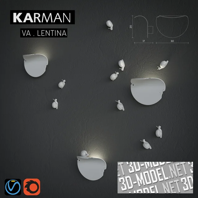 Оригинальный настенный белый светильник Karman (арт. AP115 0B) VA.LENTINA (дизайнер: Matteo Ugolini) и декоративная улитка (арт. AC115 0B). Габарит светильника: 17х20х30см. Источник света смонтирован в верхней части корпуса, за «листом». Светильник выполнен в виде круглого листа с отогнутой верхней кромкой, «прогрызенный» улиткой в трех местах. Улитка может быть прикреплена в любом месте бра или рядом с ним. Отлично выглядит группа из светильников и нескольких улиток, размещенных на плоскости стены.