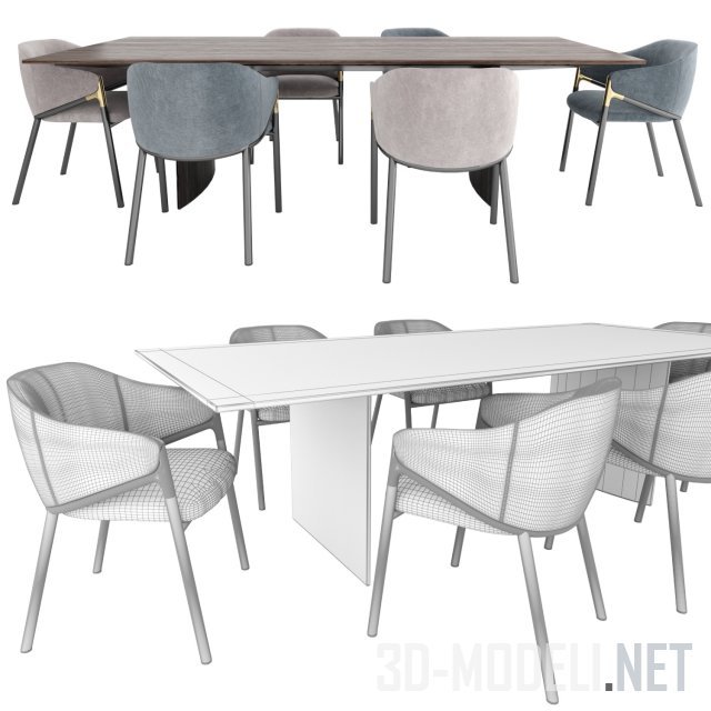 Обеденный стол Linha (дизайн studio mk27) является выражением минимализма, примером элегантности в пропорциях и стильного дизайна. Внимание к деталям позволило создать спроектировать обеденный стол с большим пролетом, рамой толщиной всего 16 мм и столешницей длиной до 4 м. Визуально он кажется очень легким и воздушным, несмотря на сильное воздействие используемых материалов, в которых мрамор смело занимает центральное место.