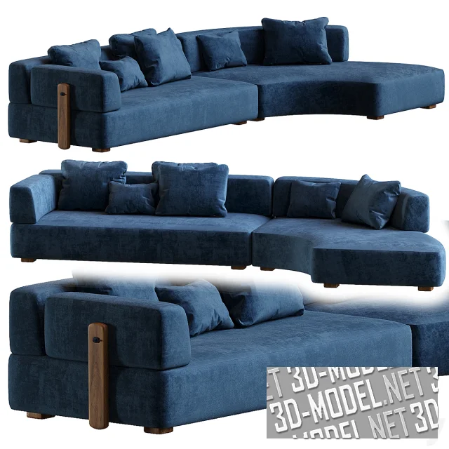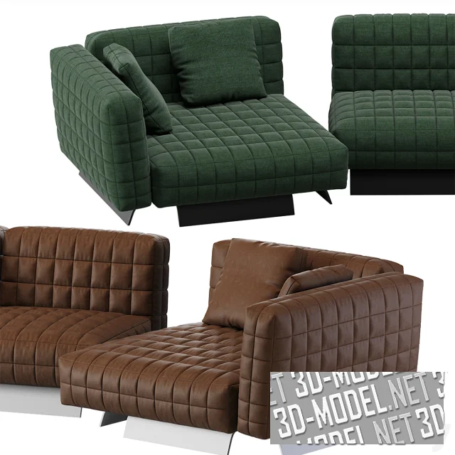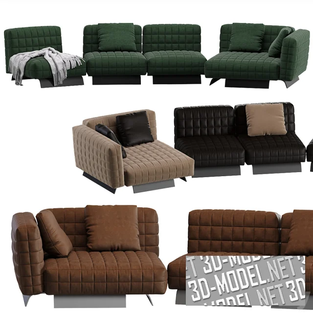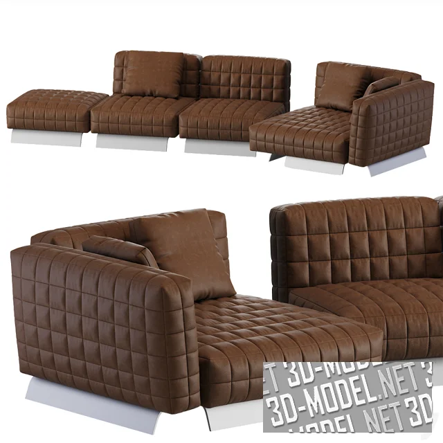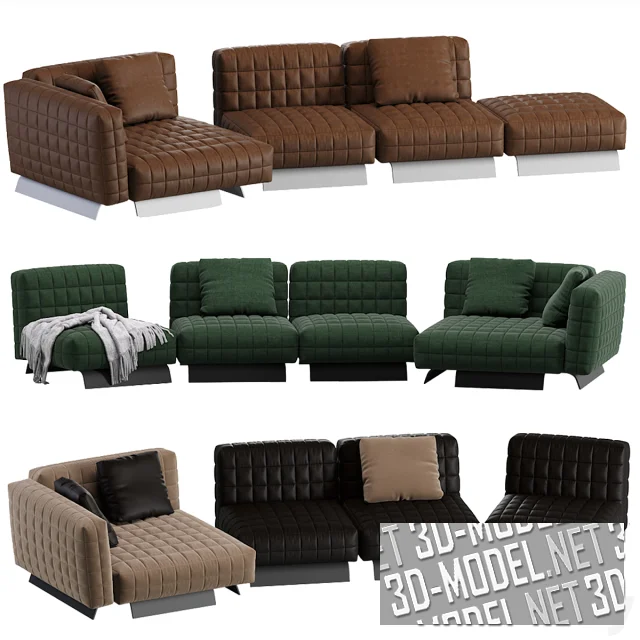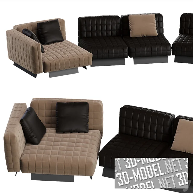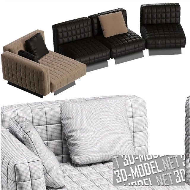 Rodolfo Dordoni). Имея минималистичные силуэты модулей диван обладает несколькими яркими изюминками - простежкой плоскостей сидений и спинок, разделяющей их на объемные квадратные плитки небольшого размера. Второй элемент - опора каждой секции. Она выполнена из скругленно-изогнутых в вертикальной плоскости прямоугольных пластин из алюминия с черной или светло-серой отделкой.