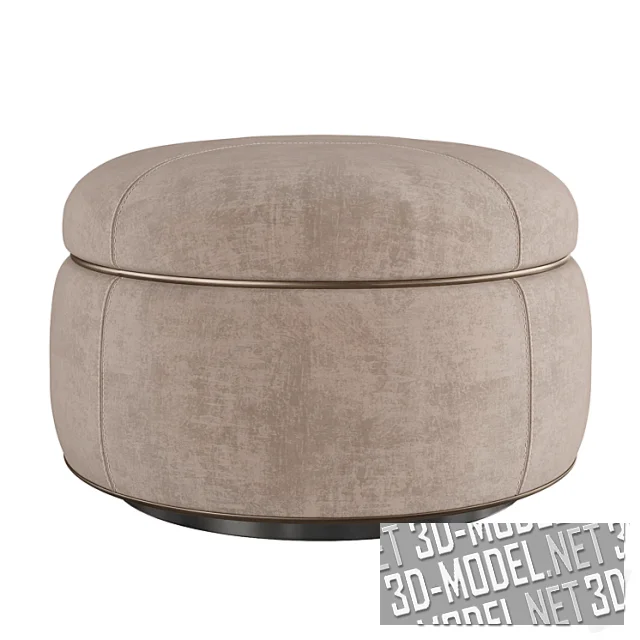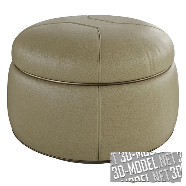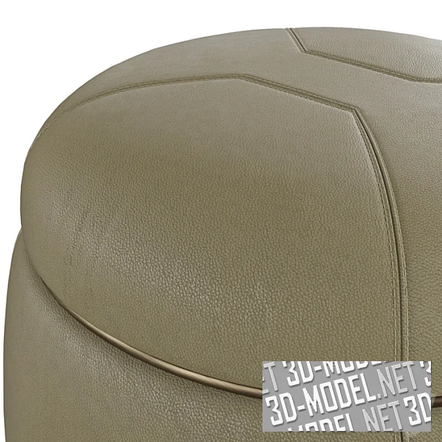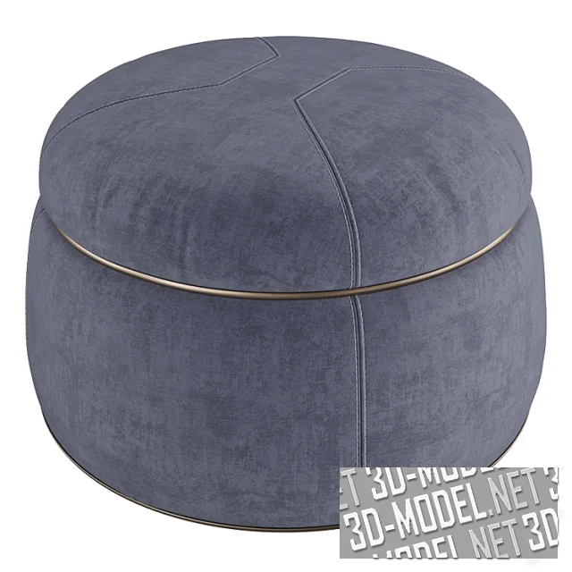 Пуф имеет полностью съемную обивку из ткани или кожи, а также два набора окантовок по окружности и швы с вышивкой, которая позволяет им оставаться симметричными, но повторять изгиб сиденья. Основание с глянцевой лакированной отделкой установлено на пяти невидимых полностью поворотных колесах. Доступен пуф в одном размере (70 х H40 см).