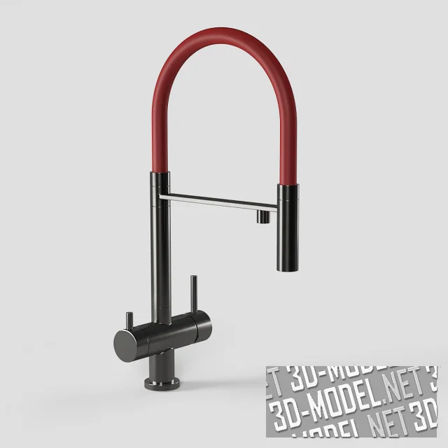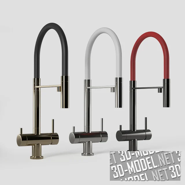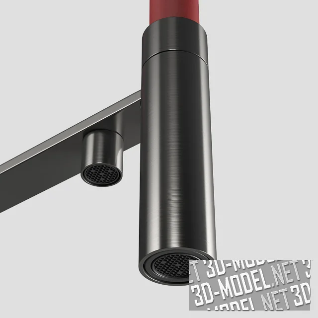 Корпус скомбинирован из двух материалов с отделками. Варианты матовой дуги гусака: черный, красный, белый. Варианты отделки металлических элементов: черный гладкий, черный матовый, серебристый брашированный, хром, золотистый брашированный, никель брашированный (темный серебристый). Габарит основного смесителя: 11,3х26х54,1см. Вынос излива - 22см. Высота излива - 24,6см.