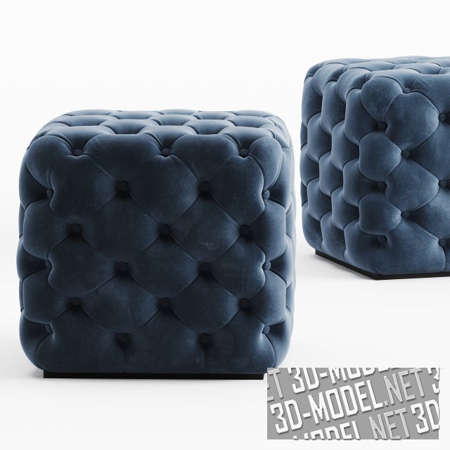 В комплекте присутствует пуф Alcide (дизайн O. Moon). Поверхность пуфа украшена утяжкой капитоне, предлагается в различных тканях из коллекции бренда. Размеры пуфа: 430 x 390 x 430 мм.