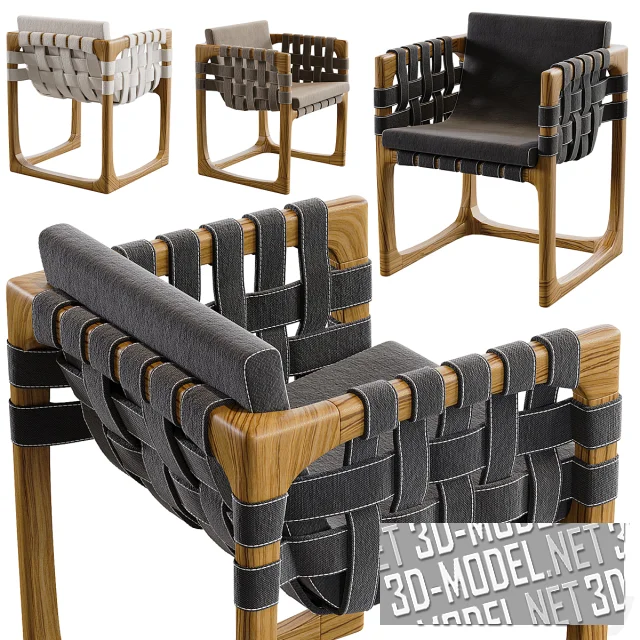 Обеденный стул Bungalow от Riva 1920 итальянского производства. Дизайнер JAMIE DURIE. Каркас из массива дерева, собранный и отшлифованный вручную, обтянут полосками кожи с декоративной отстрочкой. В сцене представлены три варианта расцветки кожи: светлый, коричневый и темно-коричневый. Размеры: Ш 63,5 x Г 56,3 x В 70,9 см.