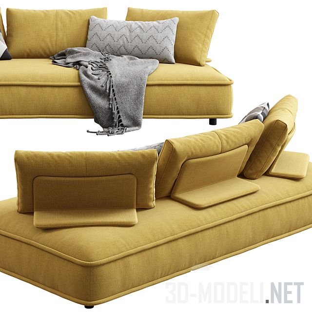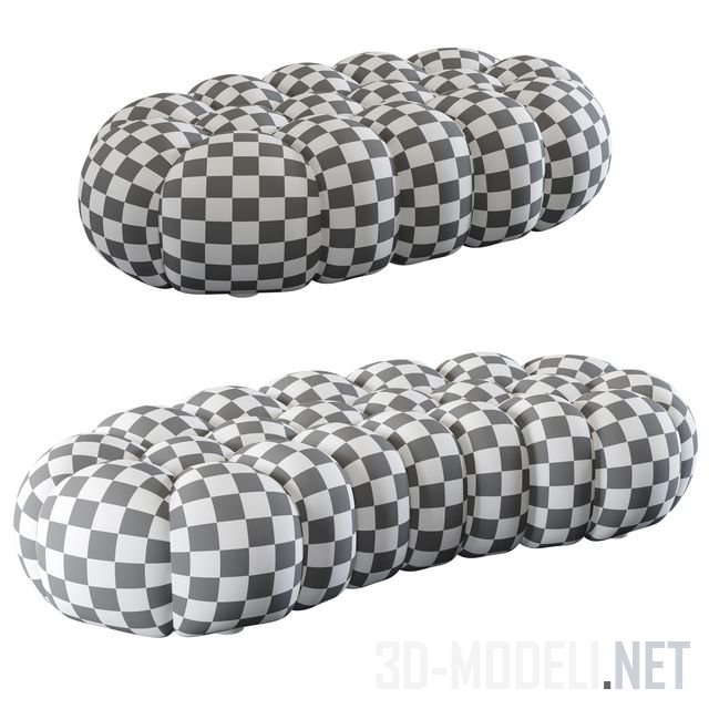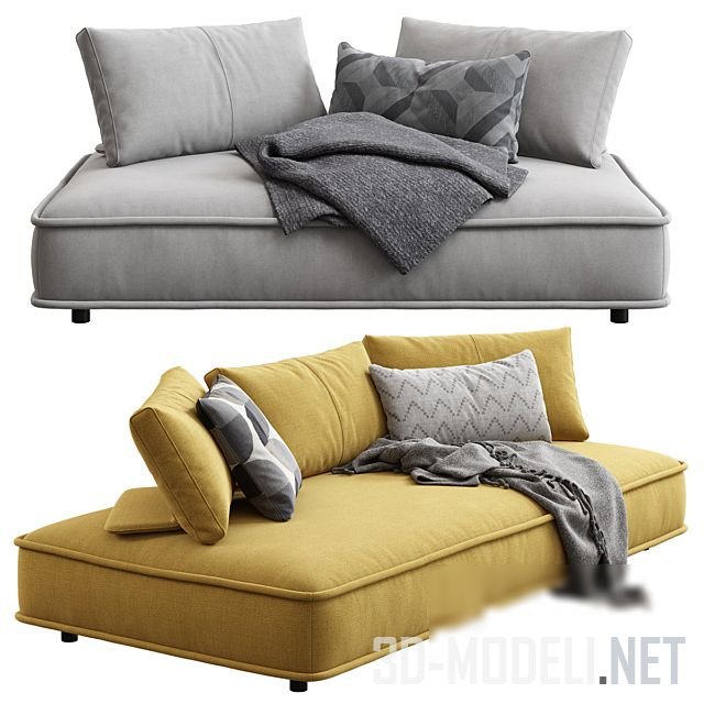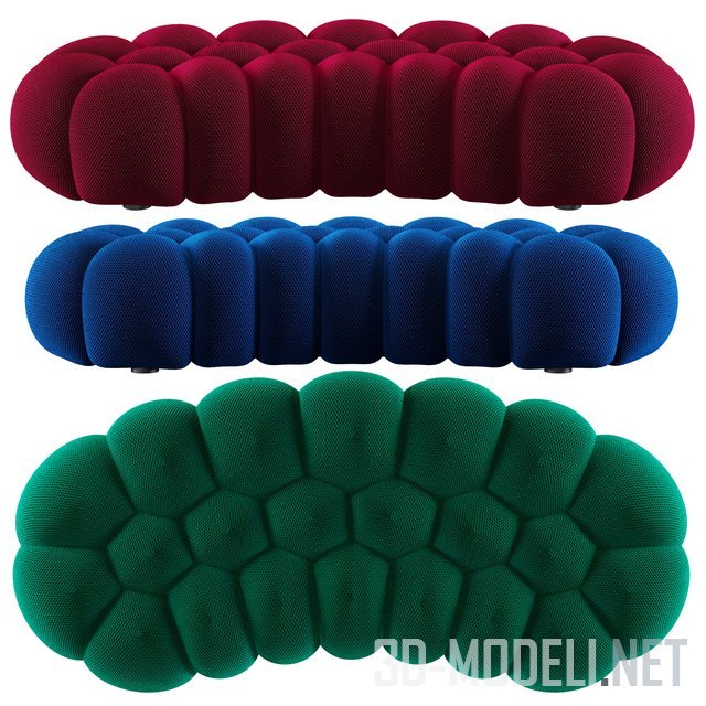 Большой трехместный (размер 2400 x 1200 x 380 мм) и двухместный (1800 x 1200 x 380 мм) диван из серии Escapade, разработал дизайнер Zeno Nugari для французского бренда Roche Bobois.