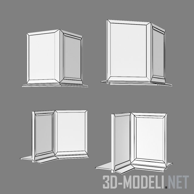Варианты наружных и внутренних угловых окон AWS 65 от Schuco с алюминиевым профилем графитового цвета. Блок состоит из двух секций: глухой и со створкой. Плоскости соединены под углом в 90 и 135 градусов. В комплекте - белые подоконники и графитовые отливы с наружной стороны.
