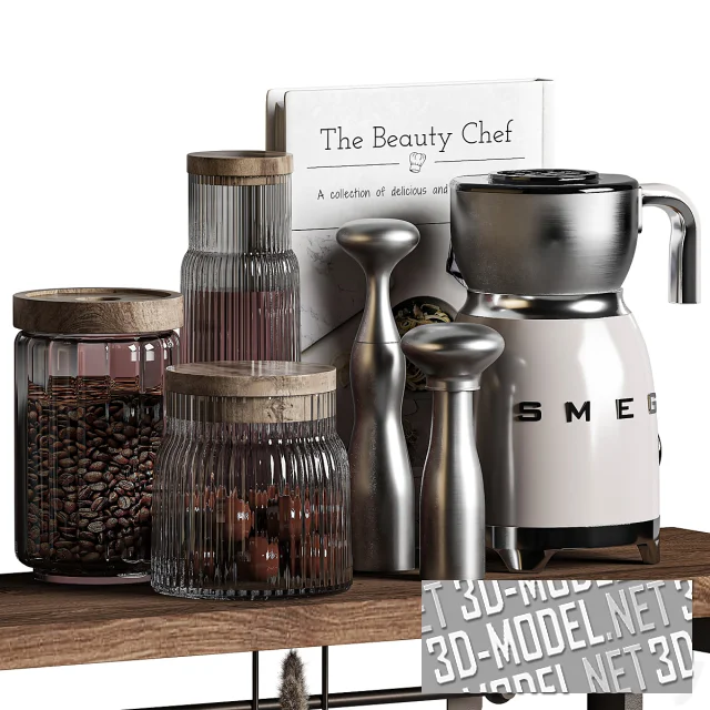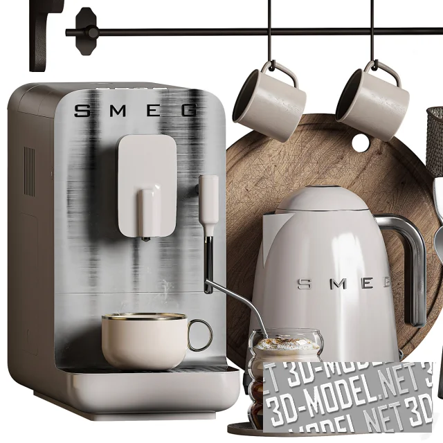 Идеальным дизайнерским вариантом техники для кухни, эстетичным и качественым станет комплект от Smeg. Сет содержит кофемашину, миксер и блендеры, здесь представлен в трех вариантах цвета (белый, бежевый, черный).