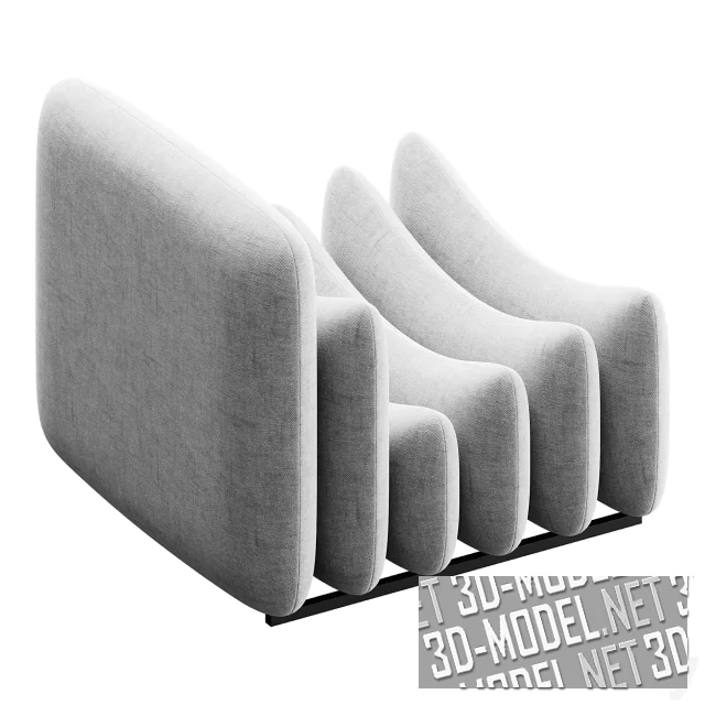 Оригинальное современное кресло ADDITIONAL SYSTEM от Tacchini (дизайнер Joe (Cesare) Colombo), состоящее из поперечных отдельных криволинейных подушек разного габарита, складывающихся в эргономичную конструкцию. Отдельные мягкие элементы закреплены между собой и установлены на черных горизонтальных «салазках». Кресло имеет габарит: 90х90х75см. Подушки обиты текстилем двух оттенков.