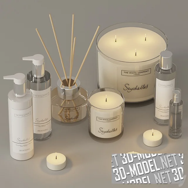Набор аксессуаров и косметики The White Company, предназначенной для гостиниц и отелей. Коллекция, изготовленная с применением новых технологий, выпущена в традиционном белом цвете: аромодиффузор, лосьоны для тела, крема. Дополняют инсталляцию обработанные вручную ароматические свечи разного размера.
