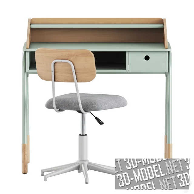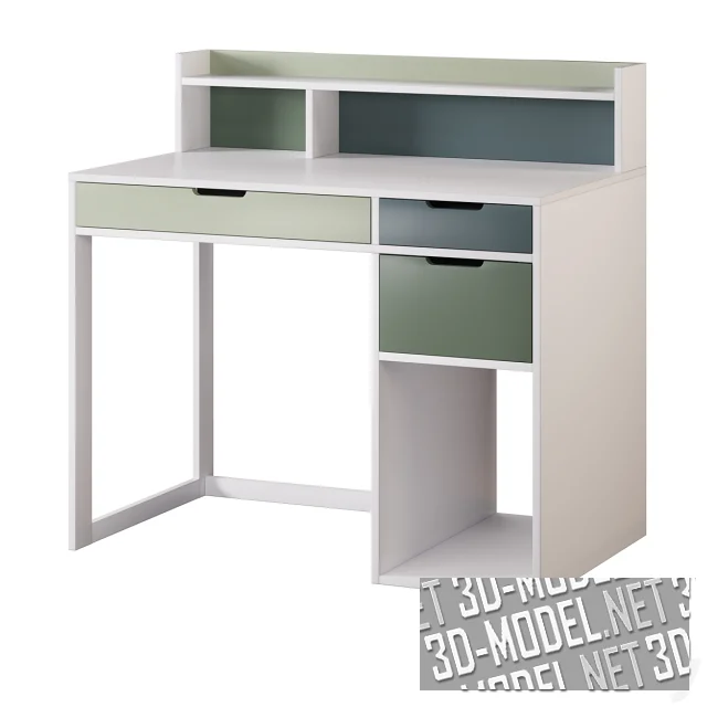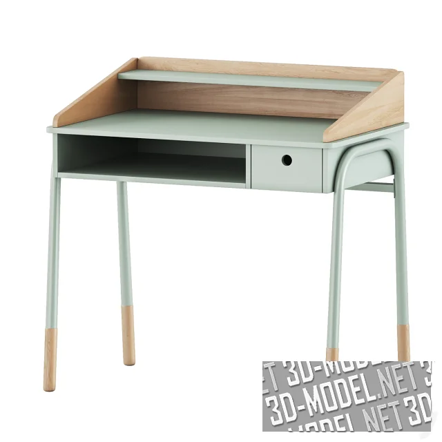 Письменный стол Ligne Amazonie от Vertbaudet является идеальным вариантом для компактного рабочего уголка. Отделка стола характеризуется теплыми деревянными акцентами и мягкой пастельно-зеленой палитрой. Верхняя надстройка с полочкой удерживает учебники и мелочи, скругленные борта предотвращают падение предметов, а подстолье включает открытую нишу и выдвижной ящик с круглым вырезом вместо ручки. Трубчатые ножки с деревянными «носочками» выглядят дружелюбно и устойчиво. Размеры стола: Д 89,5 х Ш 55 х В 90 см, идеальный формат для детской или небольшого рабочего места.