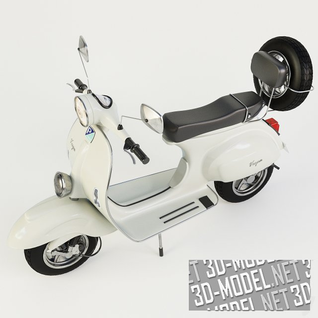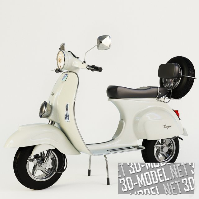 Помимо практичности, скутеры Vespa обладают и эстетической привлекательностью. Они выпускаются в широком диапазоне цветов и отделок. Эта реалистичная трехмерная модель скутера белого цвета, все текстуры собраны в архиве.