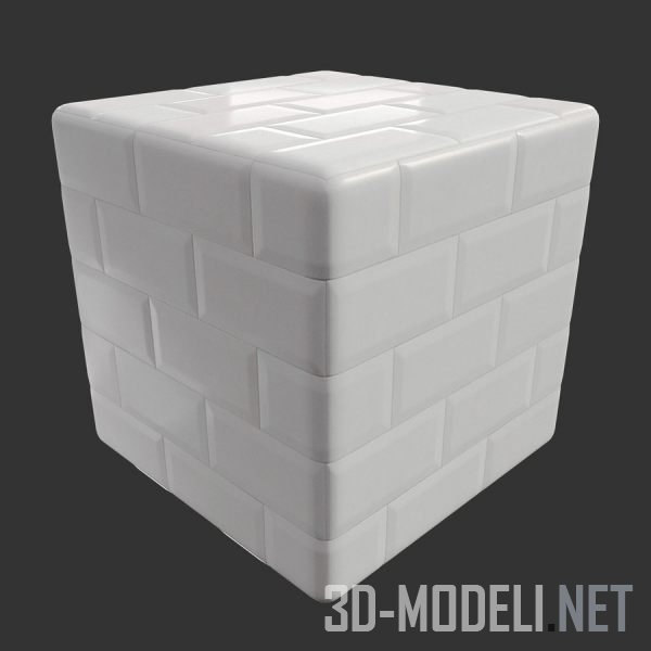 Бесшовные текстуры для создания реалистичного PBR материала глянцевой белой плитки в виде кирпичиков. Подобная отделка часто встречается на поверхностях метрополитена.