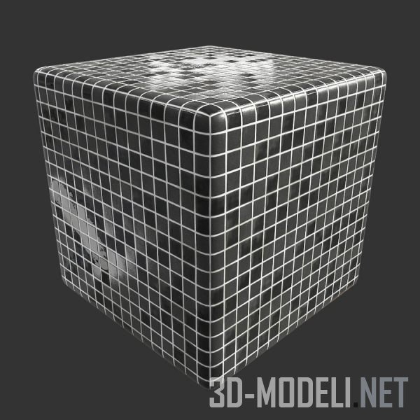 Красивая бесшовная текстура черной плитки (мозаики) из оникса для оформления ванных, душевых кабин, санузлов. Это pbr набор изображений, который включает в себя такие карты, как: diffuse, glossiness, height, normal, reflection, roughness и.т.п.