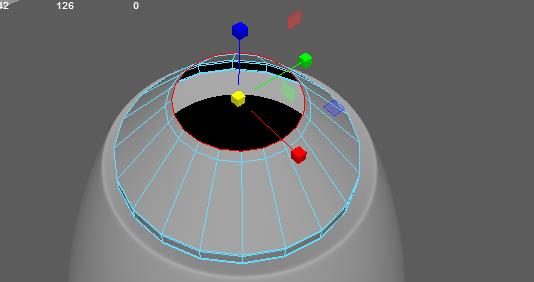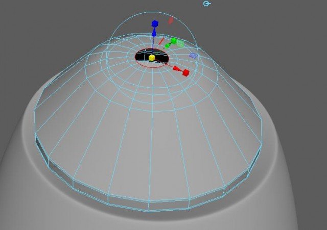 Выделите все вертексы в верхней части сферы и с помощью инструмента масштабирования сплюсните их к центру.