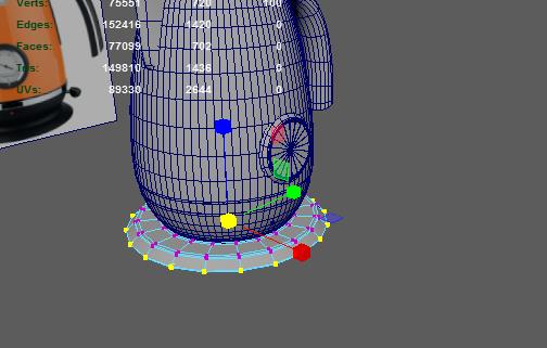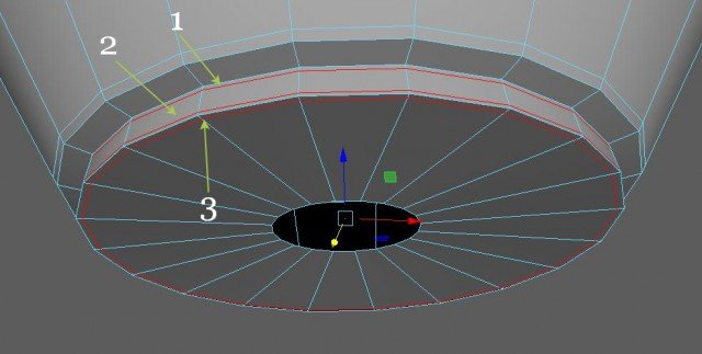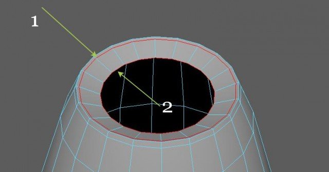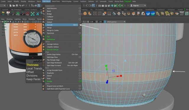 8. Металлическая полоска на чайникеШаг 1Для создания металлической полоски на чайнике. Добавьте два ребра и между ними выделите грани по кругу, как показано на рисунке.