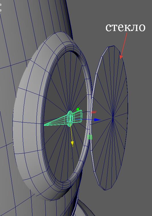 У второго цилиндра удалите грани, превратив его в плоскость. А первый сделайте очень тонким- это будет стекло.