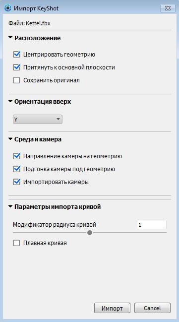 Шаг 1Открываем KeyShot и импортируем нашу модель в программу. Обращаем внимание на ось координат которая смотрит вверх.