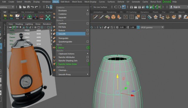 Шаг 1Примените сглаживание ко всем частям чайника, кроме корпуса, так как мы его уже сгладили раньше.