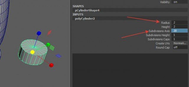 Шаг 1Создайте простой цилиндр. Меню Create> Polygon Primitives> Cylinder.
