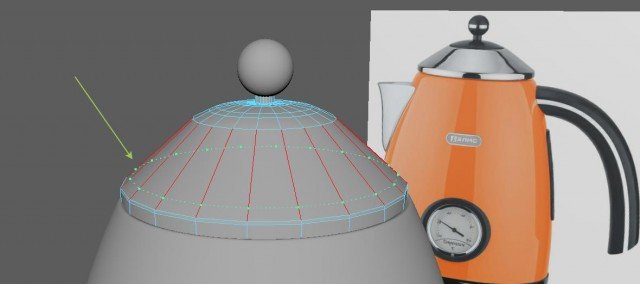 Шаг 7Добавьте дополнительно три ребра (Edge), что позволит вам получить более точную форму носика. Ориентируйтесь на изображение чайника.