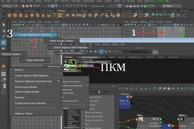 Шаг 2С выбранным во вьюпорте Plane, щелкните на пиктограмме, созданного ранее материала Blinn, правой кнопкой мыши и выберите Assign Material To Selection.