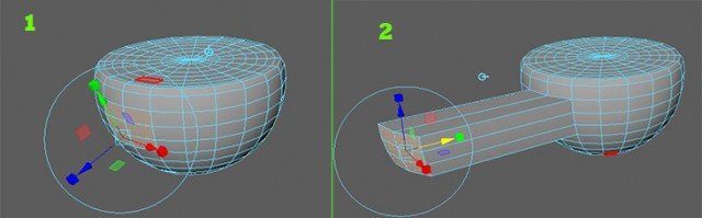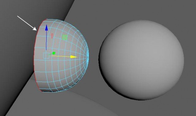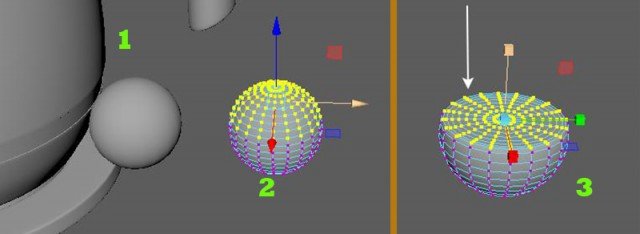 Шаг 2Удалите половину сферы. И немного выдвинет крайнее ребро назад, как показано на рисунке.