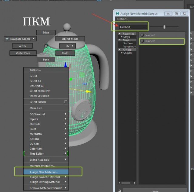 Шаг 1Теперь нам нужно назначить нашим деталям стандартные материалы, чтобы в KeyShot было удобно текстурировать их. Выберите корпус чайника. Щелкните правой кнопкой мыши и в открывшемся меню выберите Assign New Material.
