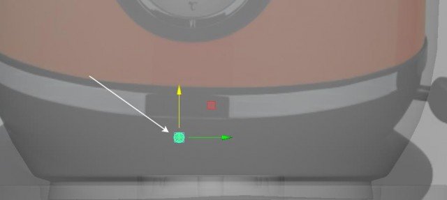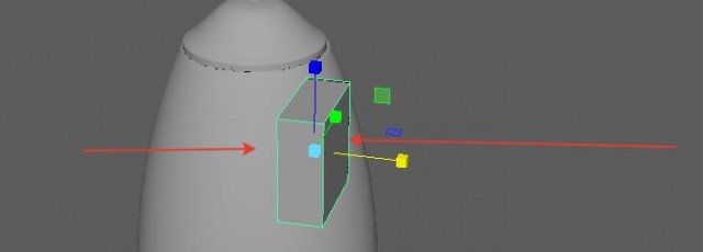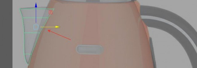 Далее, выделите все передние грани нашего элемента и выпрямите переднюю поверхность с помощью инструмента масштабирования, потянув за желтый манипулятор.