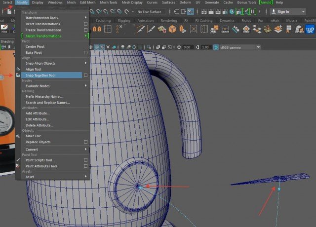 Шаг 7 Вы создали модель ручки, однако, вершины по центру еще не соединены. Это легко проверить через инструмент сглаживания (клавиша 3). В месте соединения появятся артефакты. Еще один способ убедиться в этом – подвигать вершины.