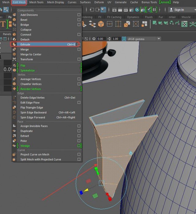 Шаг 4 Используя инструмент выдавливания, начните создавать форму ручки, ориентируясь на опорную фотографию.