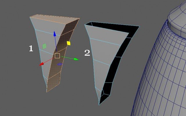 Шаг 9 Выдавите, с помощью инструмента выдавливания (Extrude), внутренние ребра на обоих разделенных частях.