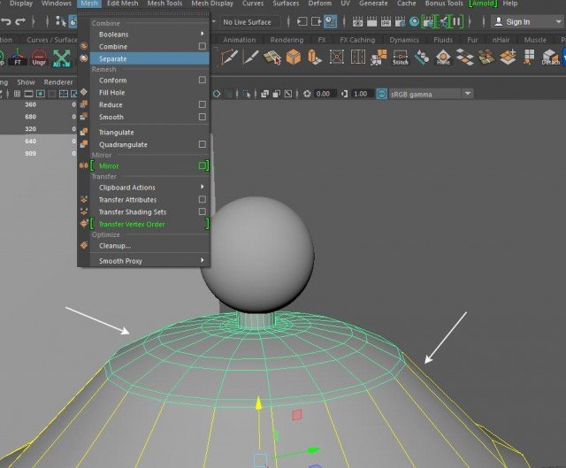 Шаг 8 Нам нужно отделить верхнюю часть крышки. Для этого мы используем инструмент Separate, который находиться в меню Mesh.