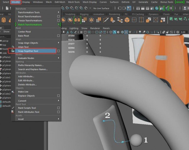 Шаг 4Создайте сферу и присоедините ее к ранее созданной прокладке.