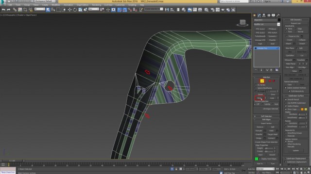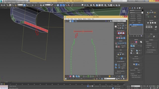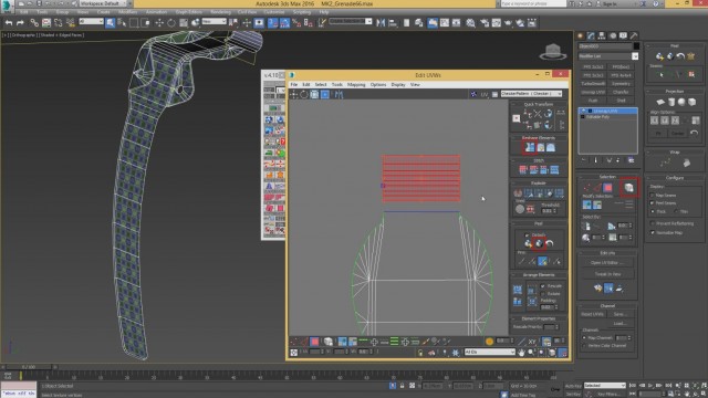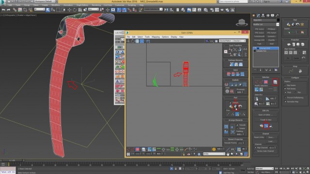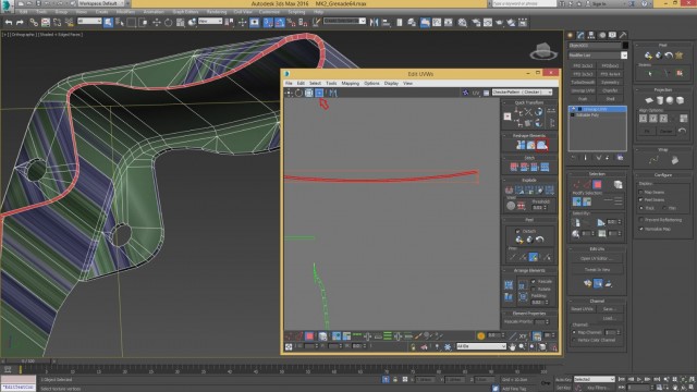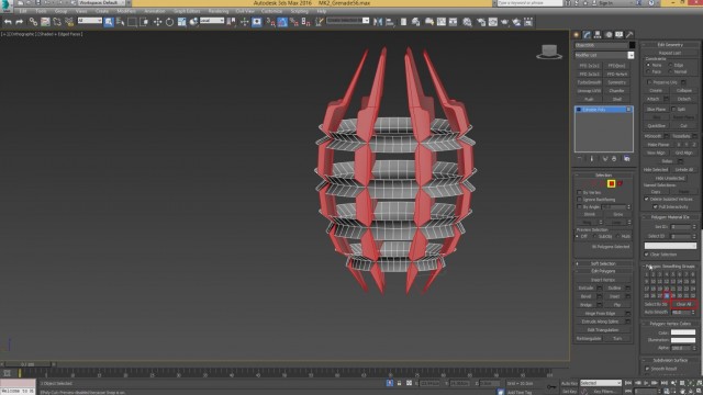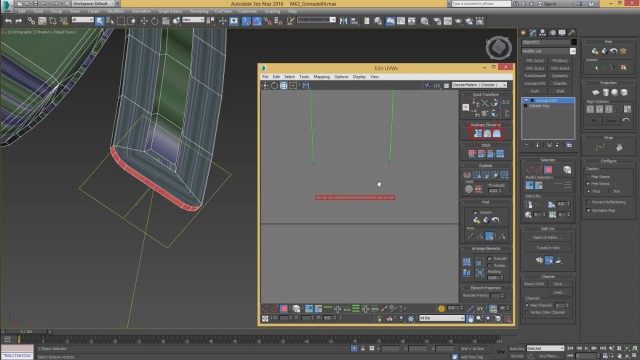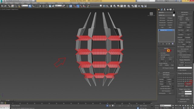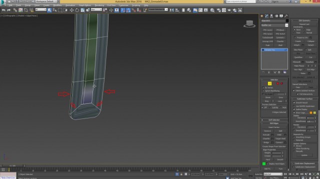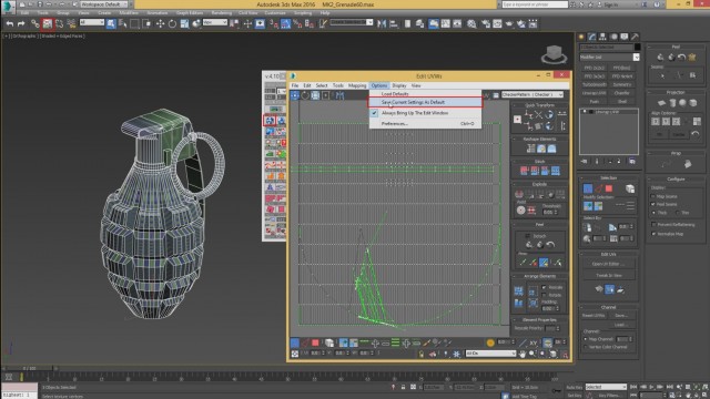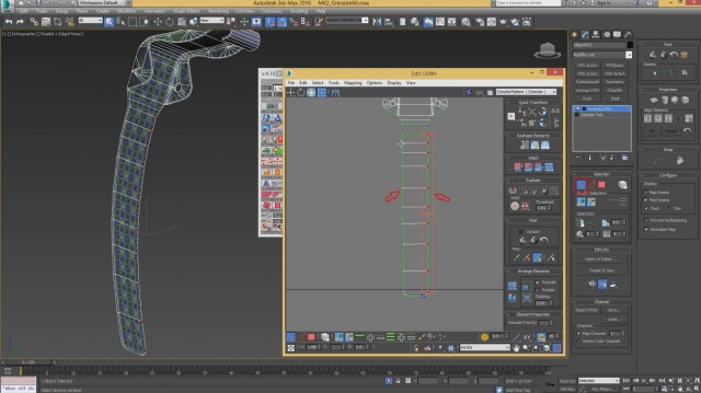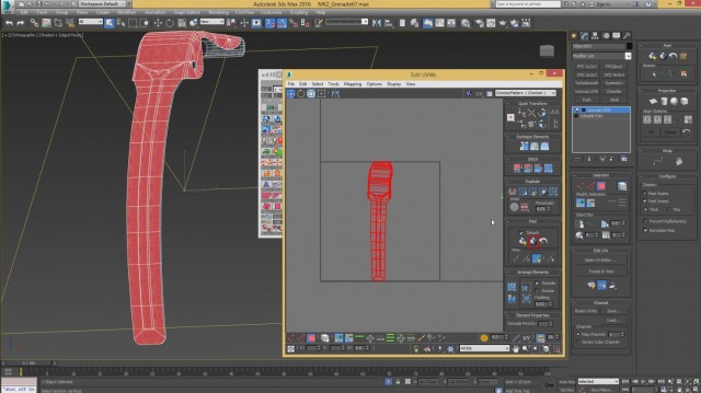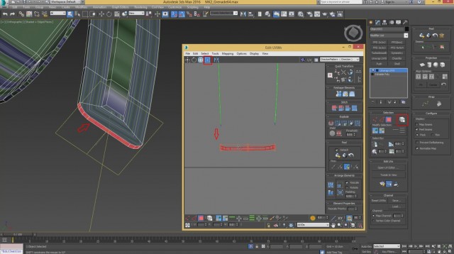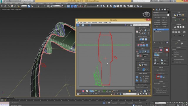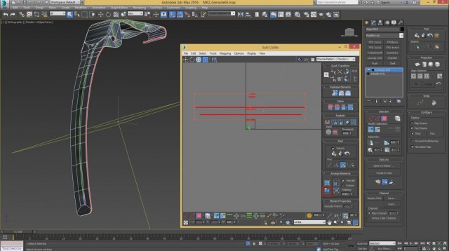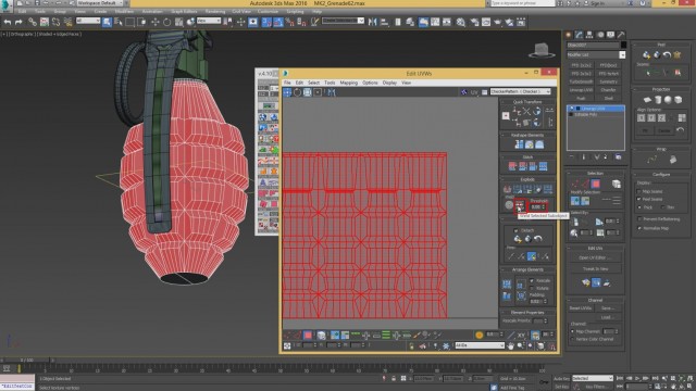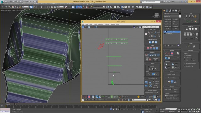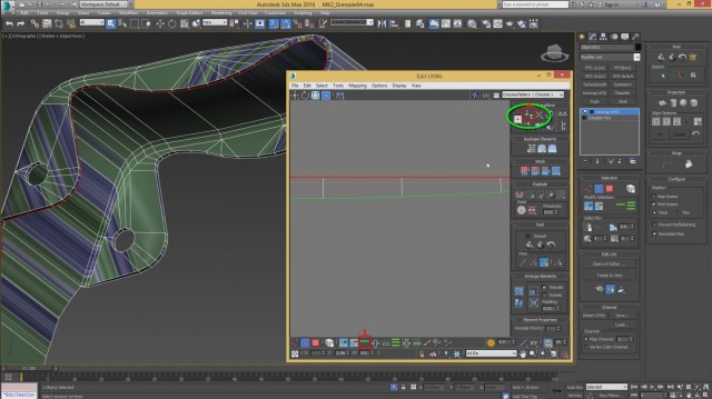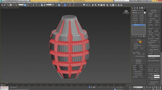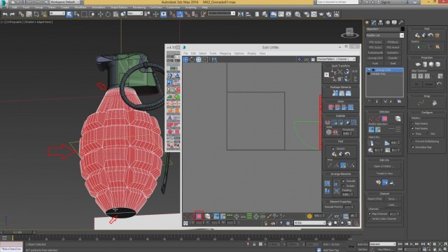 Шаг-8.На этом, моделирование нашей гранаты закончено, и мы переходим к развёртке. Первым дело, выключаем слой high poly и включаем low poly.