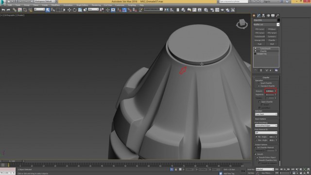 Теперь в стек модификаторов, вставляем уже настроенные в прошлом уроке, модификаторы Chamfer и TurboSmooth. После этого, в модификаторе Chamfer, переключим галочку на Standard Chamfer. Далее, проверяем модель, как она выглядит со всех сторон. Где необходимо, добавляем дополнительные рёбра, чтобы наша модель выглядела максимально правильно.