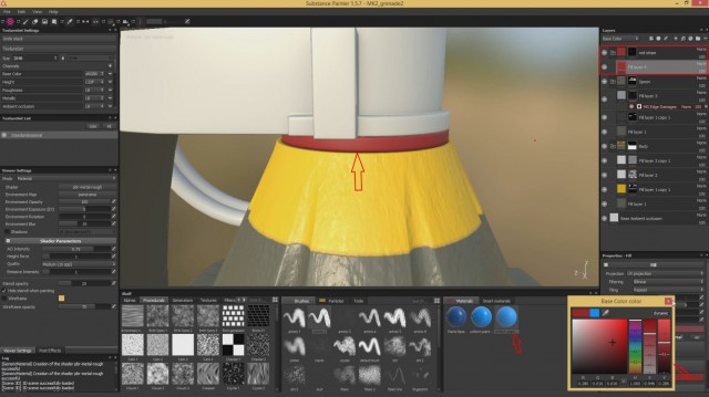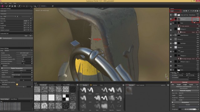 Шаг-15.Вернёмся к слою с материалом, кликнем по нему ЛКМ, выберем значение height и понизим у него значение до 25, чтобы слой краски по металлу на объекте не был таким толстым.