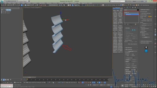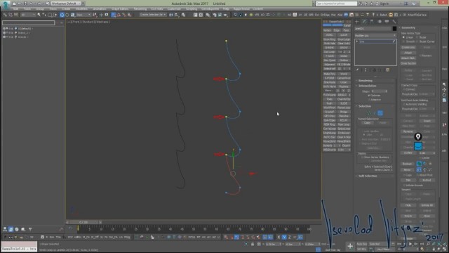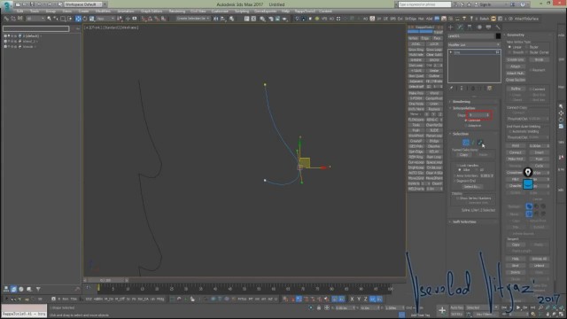 Шаг-2.Третью точку также можно превратить в Bezier и затем придать вид некой складки шторки. Чтобы изгибы были более плавные, увеличим параметр Steps, в свитке Rendering -> Interpolation.