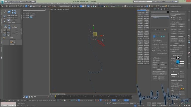 Теперь применим нашему сплайну модификатор Extrude и вытянем наш его, превратив в объект. После этого, конвертируем объект в Editable Poly. Также применим к объекту, какой-нибудь материал.
