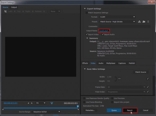 Шаг-15.В появившимся окне указываем путь, куда будет сохранён данный видео файл, задаём также ему имя и все необходимые настройки. После этого, нажимаем на кнопку Export.
