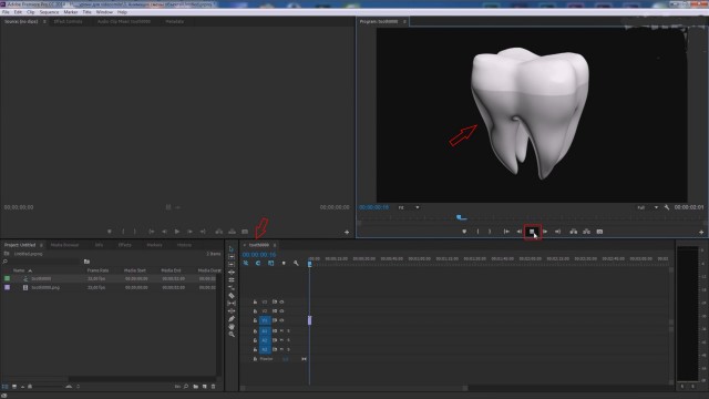 Осталось запустить анимацию и посмотреть, как происходит замена одного объект на другой. Т.е. как белый зуб сменяет жёлтый.