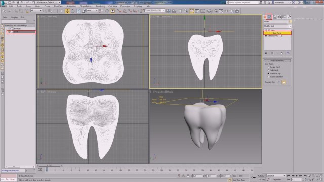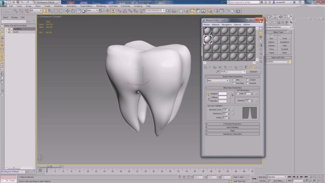 Шаг-1.Запускаем 3Ds Max, создаём объект или загружаем любой другой объект, который скачали с интернета. В моём случае - это объект зуба.