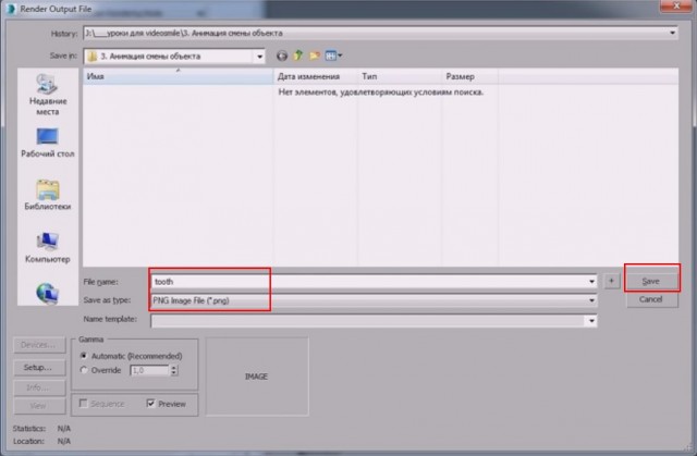 Ещё один немало важный момент, который нужно учесть. При указании папки для сохранения файла, лучше всего выбрать формат для сохранения .png, т.е. анимация будет сохранена в виде последовательности картинок. Это также считается более профессионально, так как будет сохранена анимация в виде 51 картинки, т.е. существует также и 0-вой кадр. В последствии можно будет объединить все эти картинки в один видео файл. Также так будет намного проще работать с масками, а также обрабатывать их в других программах.