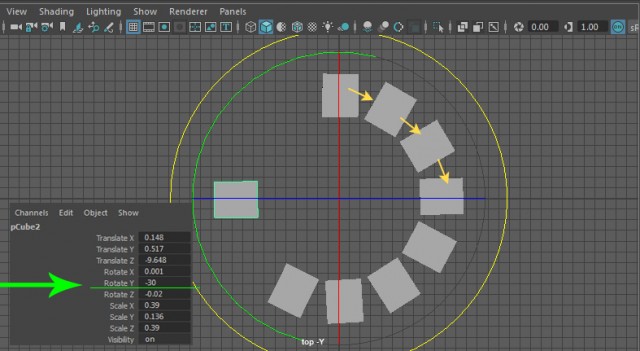 4. Копирование по кругуУкажите нужный угол поворота в Channel Box и жмите Shift+D.