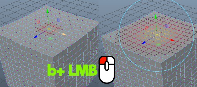 Если при этом зажать b+ ПКМ и двигать мышь, то можно регулировать область влияния.